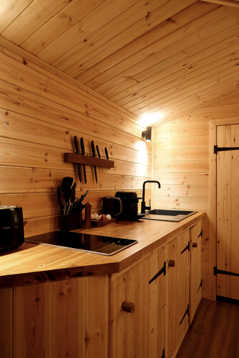 From the moment you arrive, the treehouse invites a slower rhythm. Morning light filters gently through the branches, casting soft patterns across the space as you wake to birdsong and the scent of the woods. Evenings unfold in a warm hush — sharing a quiet meal on the deck, lingering over a glass of wine, or simply watching the sky fade into dusky purples. Here, time stretches sweetly. Conversations run deeper, laughter feels lighter, and every moment together becomes its own little memory. It’s a place where romance isn’t planned — it happens naturally.